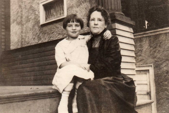 This image is of Beeza Hurst Diebold holding her daughter Catherine on the steps of, probably, the house on Breese Terrace.