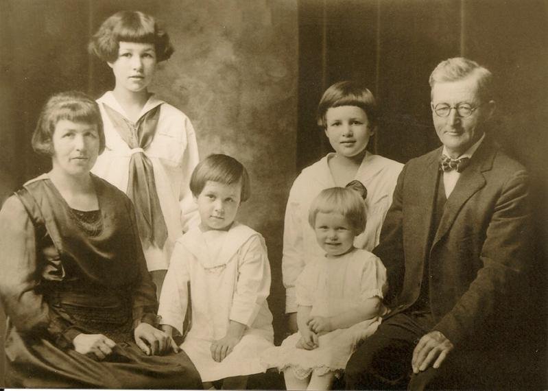 This image is of the Segessenman family. From left to right, Elise Feller (seated), Lena (standing), Marie (standing), Clara (standing), Caroline (seated in front of Clara), and seated in Hans T. Segessenman. Photo courtesy of Jennifer McBride. | |