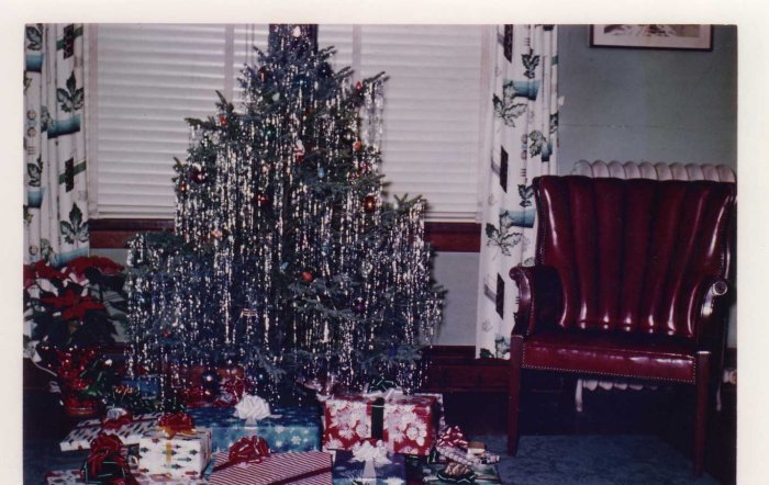 This image is of the christmas tree in 1958 at the Diebold home on Monroe St.