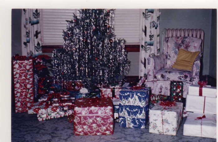 This image is of the tree and presents in 1958 at the Diebold home on Monroe St.