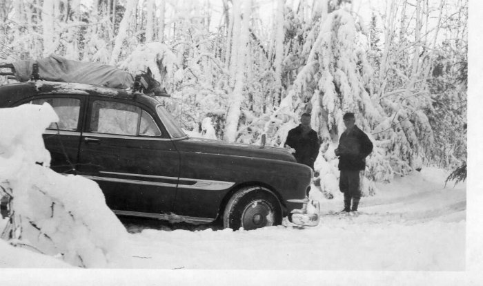 This image is of Sylvester Diebold and his friend Larry Hull on one of their hunting trips.