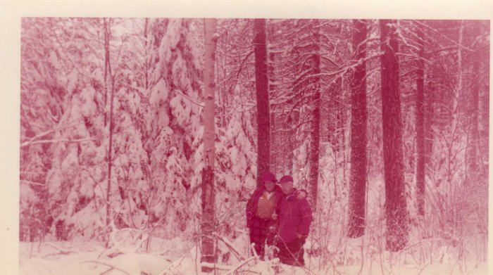 This image is of Sylvester Diebold (right) and his friend Larry Hull on one of their hunting trips.