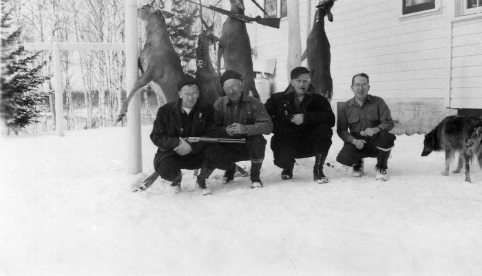 This image is of Sylvester Diebold with friends Simon Havey, Larry Hull and an unknown man.