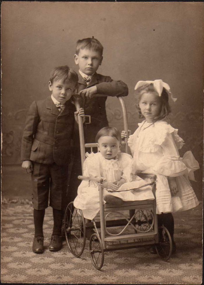 This image is of Sylvester, Jim and Ferne standing, with Monica seated.