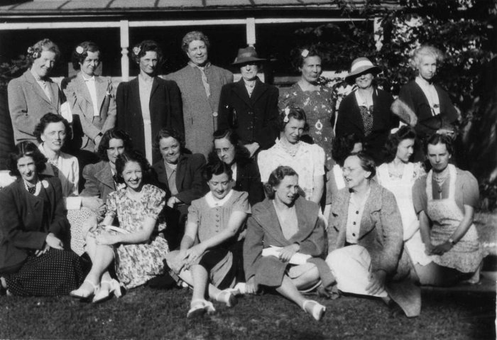 This is an image of mostly unknowns. In the back row, second from left is Ruth Rocca and third from left is Ferne Diebold.