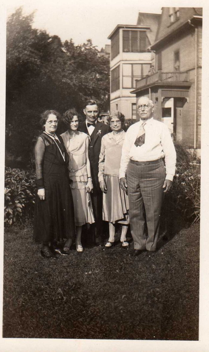 This image is of Beeza Hurst Diebold, Ferne Diebold, Scotty Skidmore, Scotty's mother Mamie, and Scotty's brother Henry Skidmore.