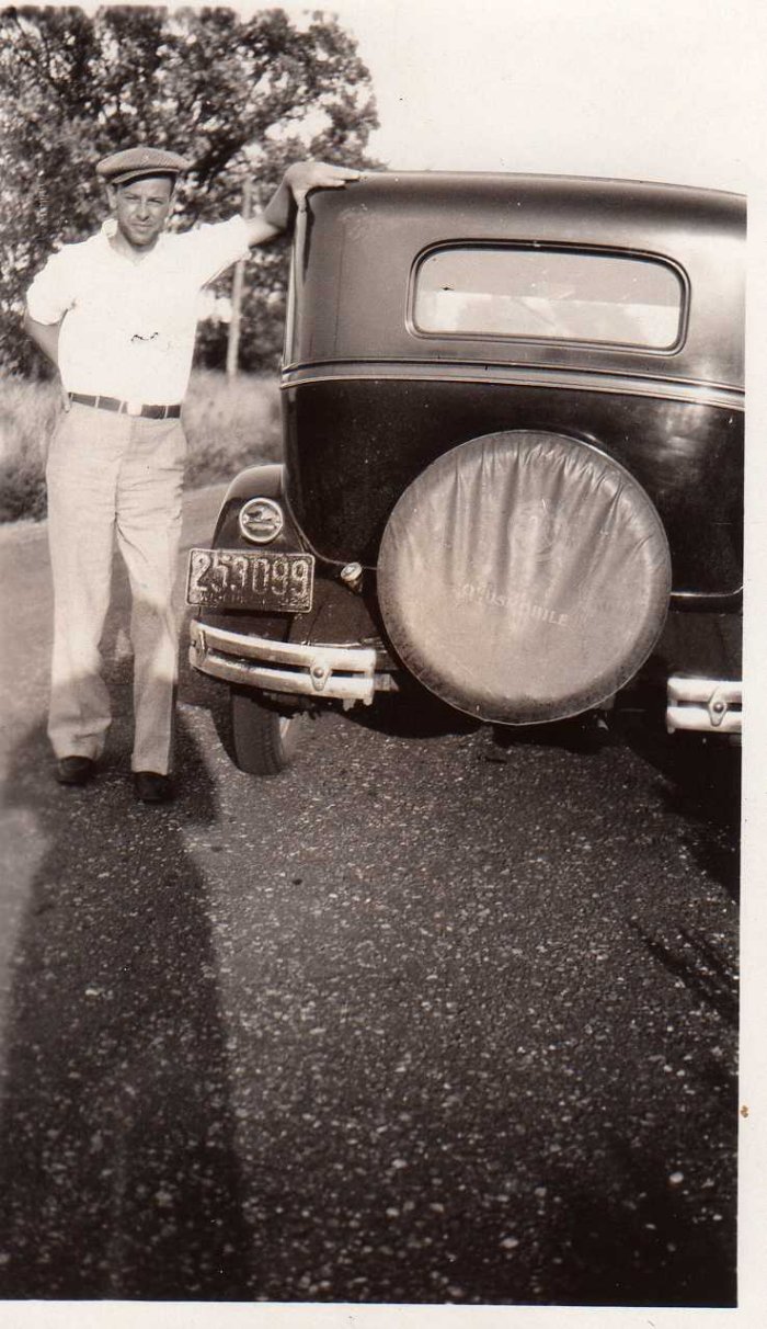 This image is of Sylvester Diebold beside one of his cars.