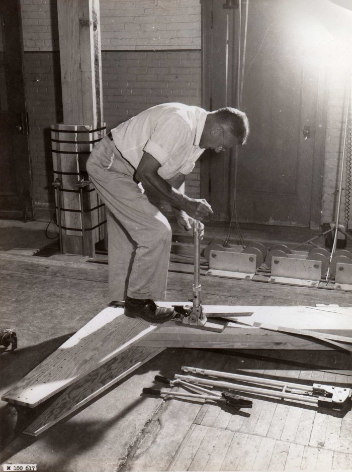 This image is of Sylvester Diebold at work at the Forest Products Laboratory.