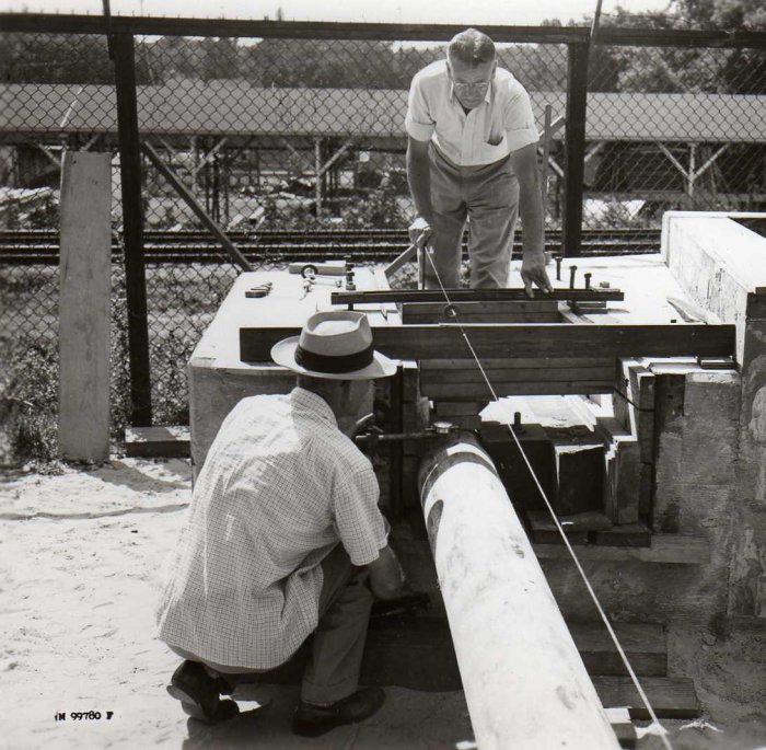 This image is of Sylvester Diebold (standing) working at Forest Products Laboratory.