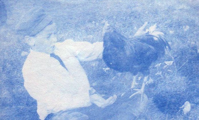 This image is of Sylvester Diebold with a chicken.