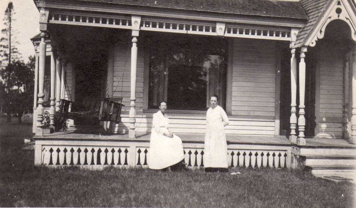 This image is of Isabel and Clorie Greeley in front of the Mayville house in Shawano.