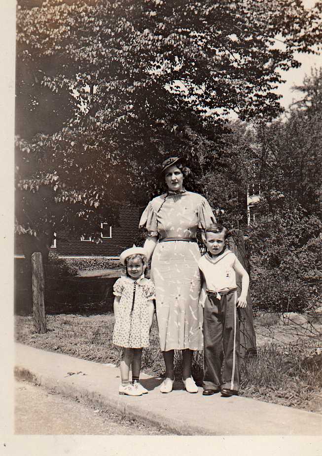 This image is of Hildegarde Hartung in the center with her children Pat and Robert Mayville.