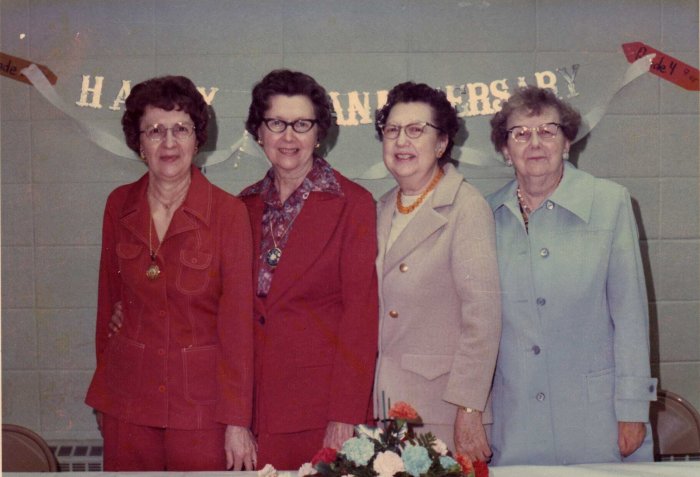 This image is of Hildegarde, Irene, Margaret, and Matilda Hartung at Pat Mayville's silver wedding anniversary, 1976.