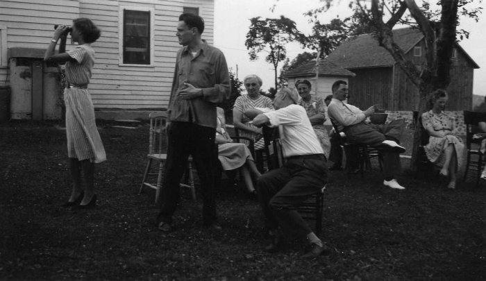 This image is of Mary Alice Diebold, Jimmy Hurst, Katherine Hurst, Scotty Skidmore sitting in the foreground, Rose Hurst, Bob Larkin, Fern Diebold and Betty Hurst.