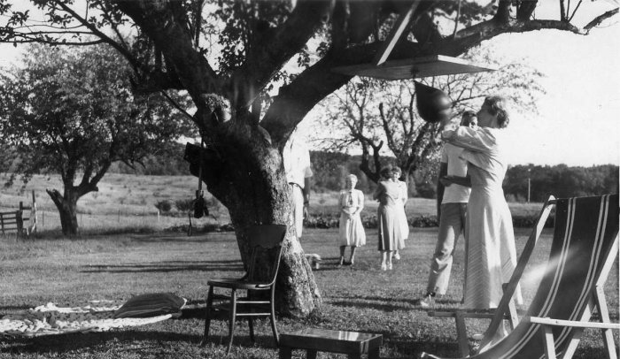 This image is of Sylvester, Ella Hurst, Addy Hurst, and Catherine Diebold in the back with Bill Diebold and Betty Hurst by the punching bag.