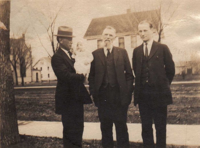 This image is of James Hurst Sr. in the center, with unknown men and baby.