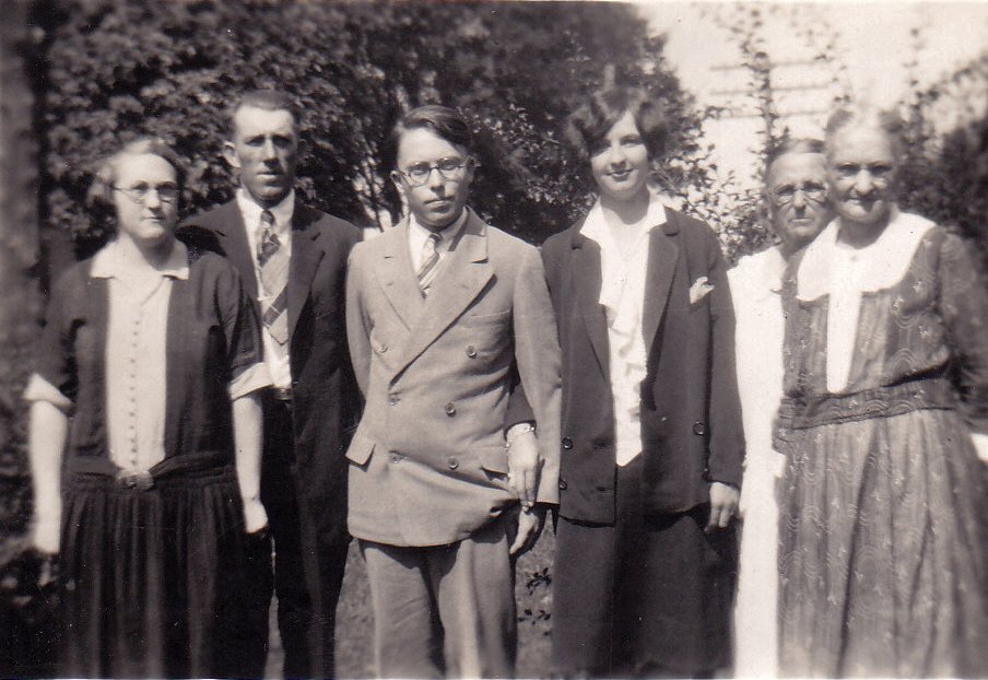 This image is, from left to right: Cornelia Liebenow Mewis, Bert Mewis, 2 unknowns, Augusta Koch Liebenow and another unknown.