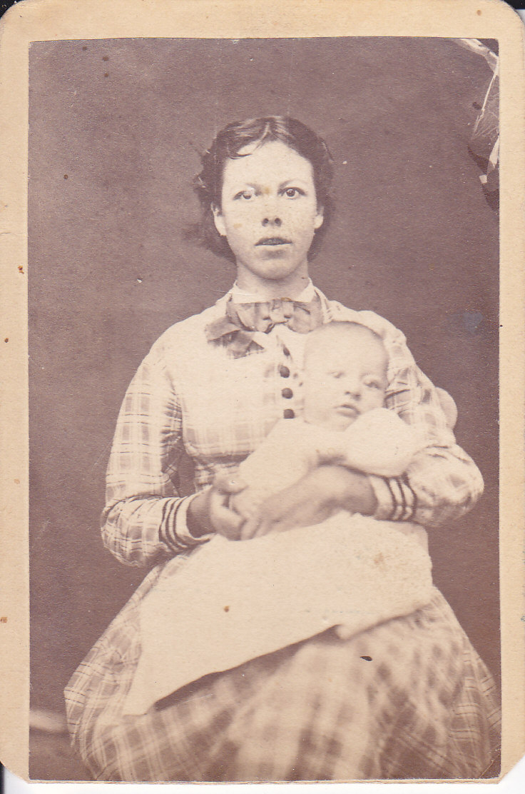 This image is of an unknown woman holding a baby. It appears to be Civil War era. Maybe it is Ruth Dimmys Tarbell Greeley?