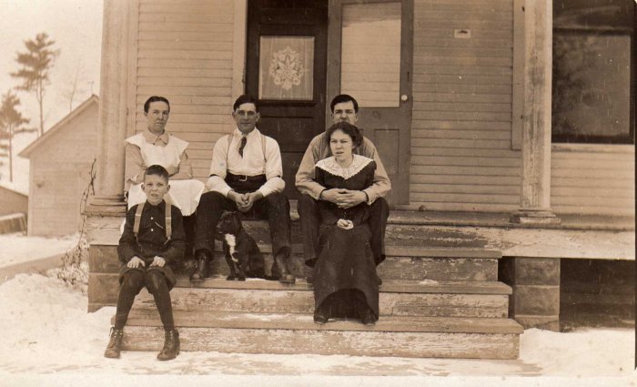 This image is of, back row Clorie, George and Howard Mayville; front Reynolds, Turtle and Velma Mayville.