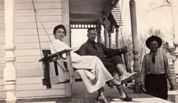 This image is of Melissa, Ed and Collin Mayville on the porch of Collin's house in Shawano.