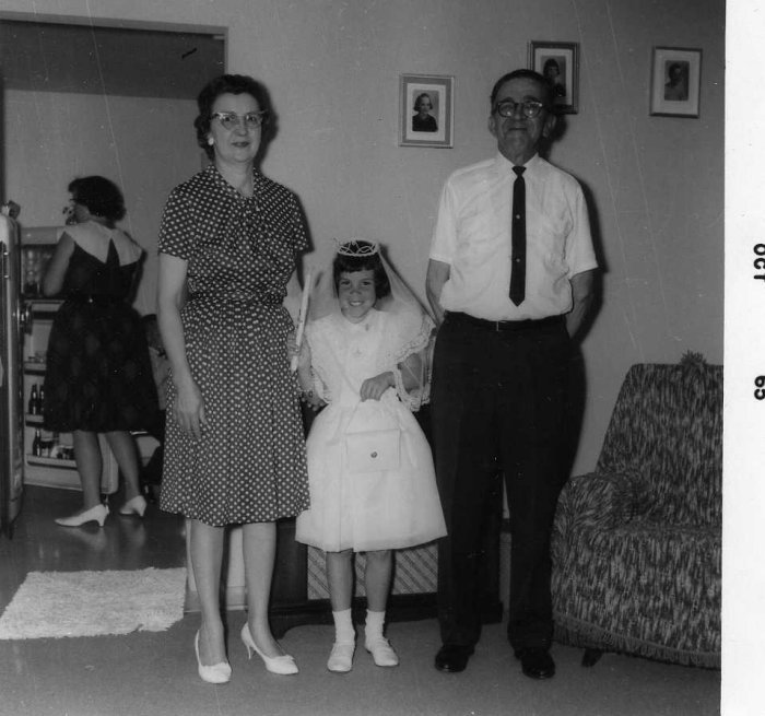 This image is of Hildegarde and Reynolds Mayville with Michelle Lins standing between them.