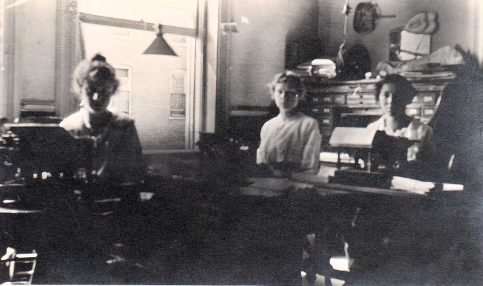 This image is of Velma Mayville working in one of her office jobs ca. 1920.