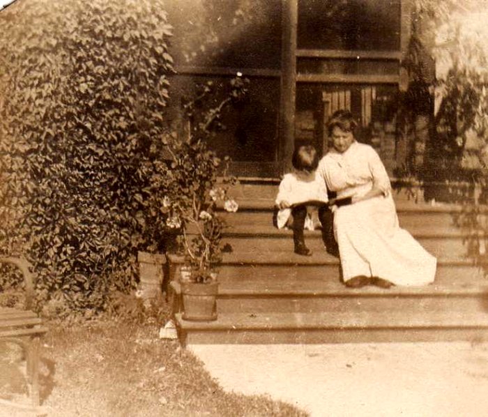 This image is of unknown Tices on the front steps of the house on Cherry st in Marshfield.