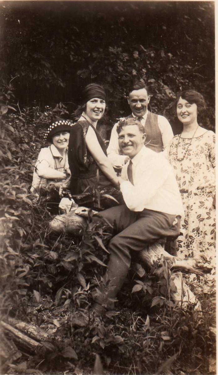 This image is of Blanche Tice, three unknowns and Francis Tice.