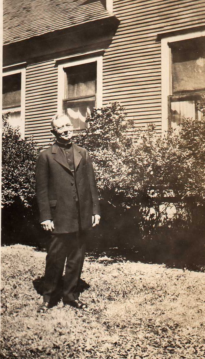 This image is of one of the priests in front of the Tice house in Marshfield.