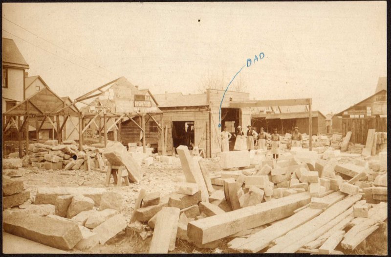 This image is of the stone quarry on Madison's west side. Sylvester Diebold labeled his father in the picture.