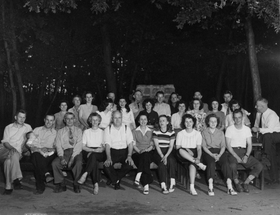 This image is of a Forest Products Laboratory gathering. Fern Diebold is in the front row, fourth from the left. I believe Stanley Skidmore is next to him. Sylvester Diebold is standing in the back row, fourth from the right.