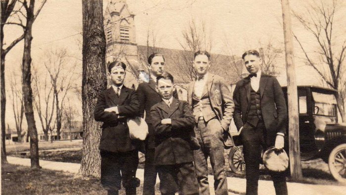 This image is of some Hurst cousins, the first on the left being a Larkin. In the background is St. John the Baptist Catholic Church on South St. in Waunakee, WI.
