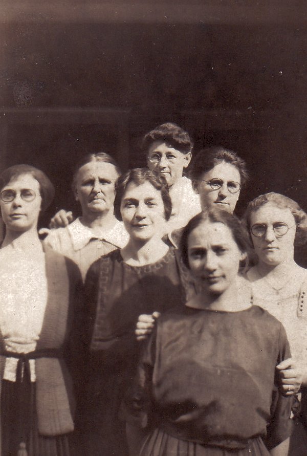 This image is of Liebenow relatives. On the far left is Josie Furland. Elsie has her arm around her mother, Augusta Koch Liebenow. Elma Loper is in the center, and in the bottom right, the three ladies are either Ella, Emma, Cornelia or Augusta Liebenow. | |