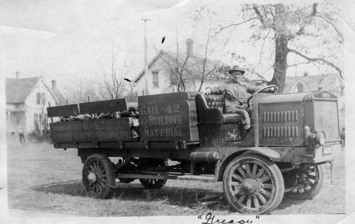 This image is of Collin Mayville driving a truck for Shawano Lumber Co.
