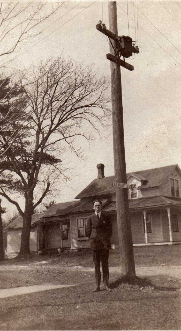 This image is of Howard Mayville standing on the next street over (S. Lafayette) from his house on Franklin St. in Shawano.