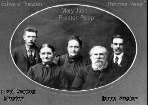 This image is of Edward Preston, Eliza Brooker Preston, Mary Jane Preston Peep, Isaac Preston and Thomas Peep. This picture is courtesy of Ned Braatz.