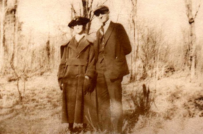 This image is of Blanche Tice and Joe Marsh on their last day together before he went to camp for WWI.