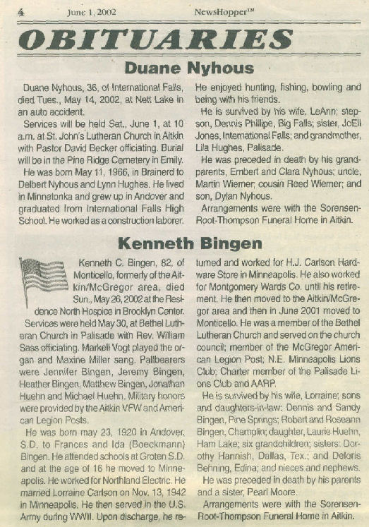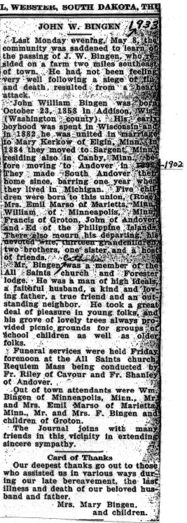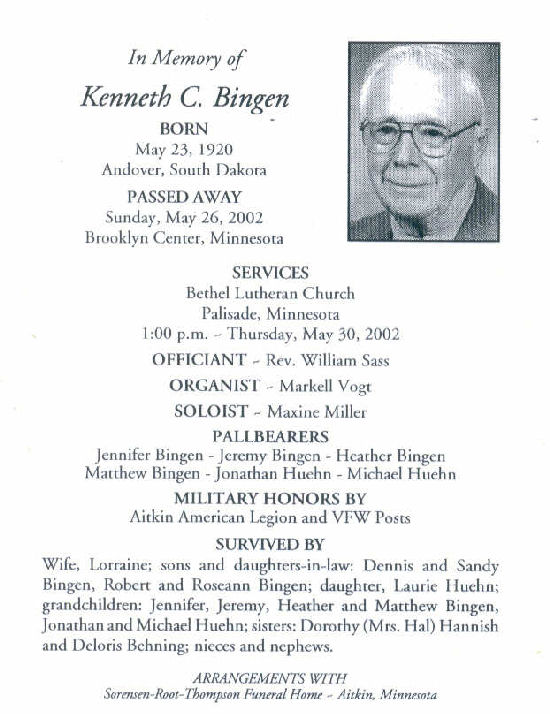 John Bingen obit part 1 // part 2