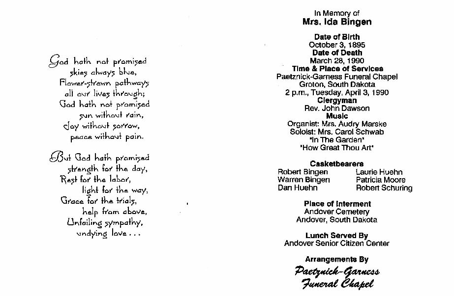 Ida Eunice Boeckmann Bingen's Memorial