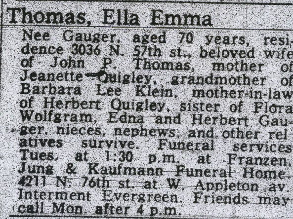 Ella Emma Gauger Thomas