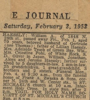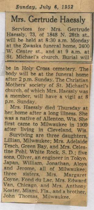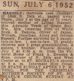 Gertrude Thomas Haessly death notice