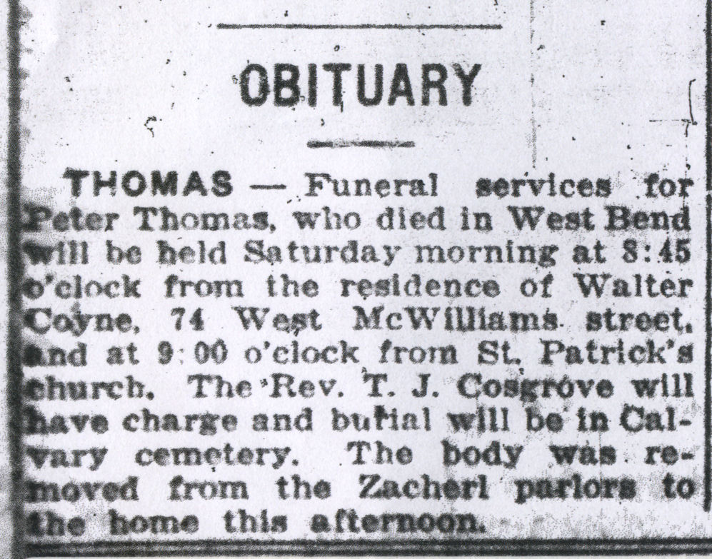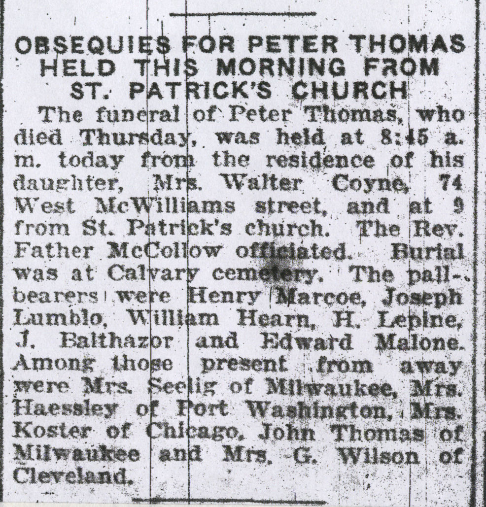 This page has obituaries as well as miscellaneous funeral- related papers.